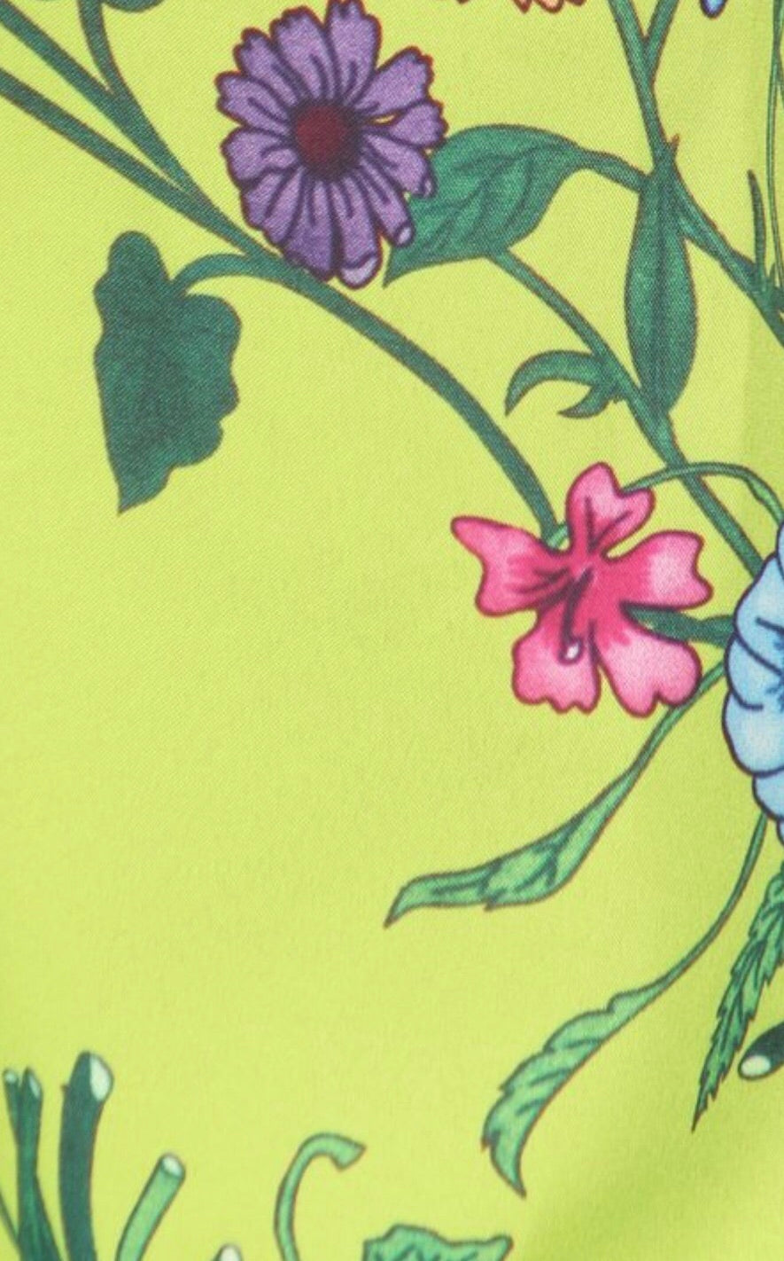 Floral print, waist length top in a relaxed fit with a graphic print neck tie, front button up closures, and short sleeves.