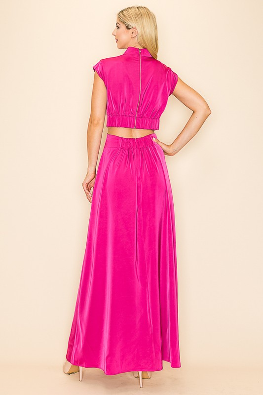 Sleeveless Mock Neck Maxi with cut out on sides. Back zipper. Details Self: 100% Polyester Lining: 100% Polyester