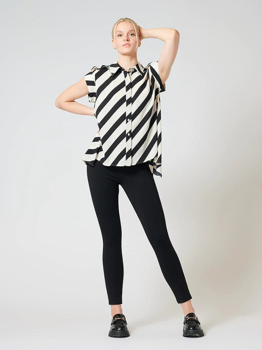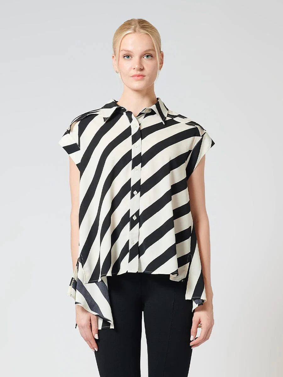 Stay stylish with this asymmetrical top from Gracias Fashion. The oversize blouse features a black and beige color, perfect for any occasion. Feel confident and fashionable with this amazing garment.