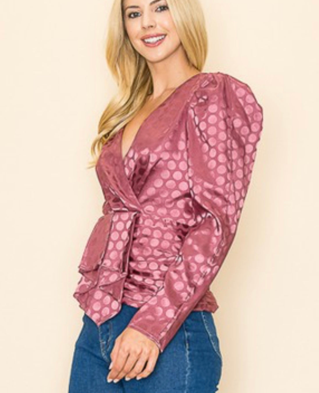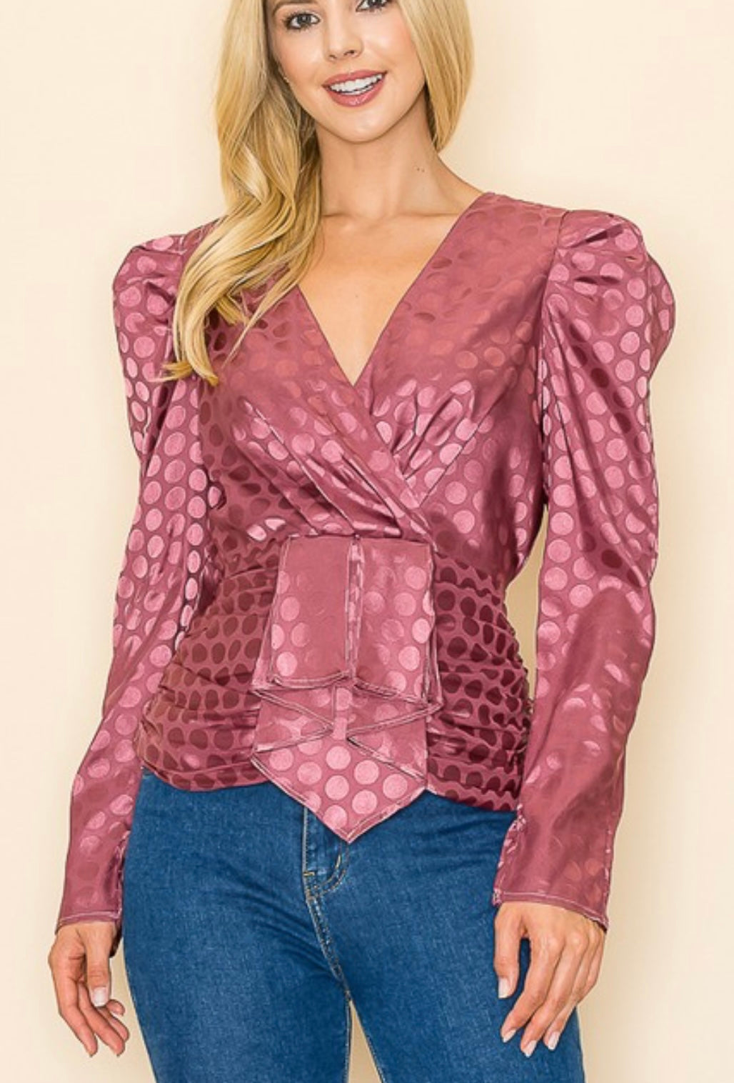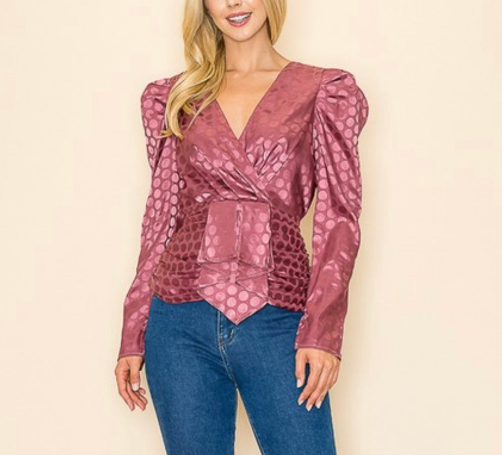 V neck polka dot top